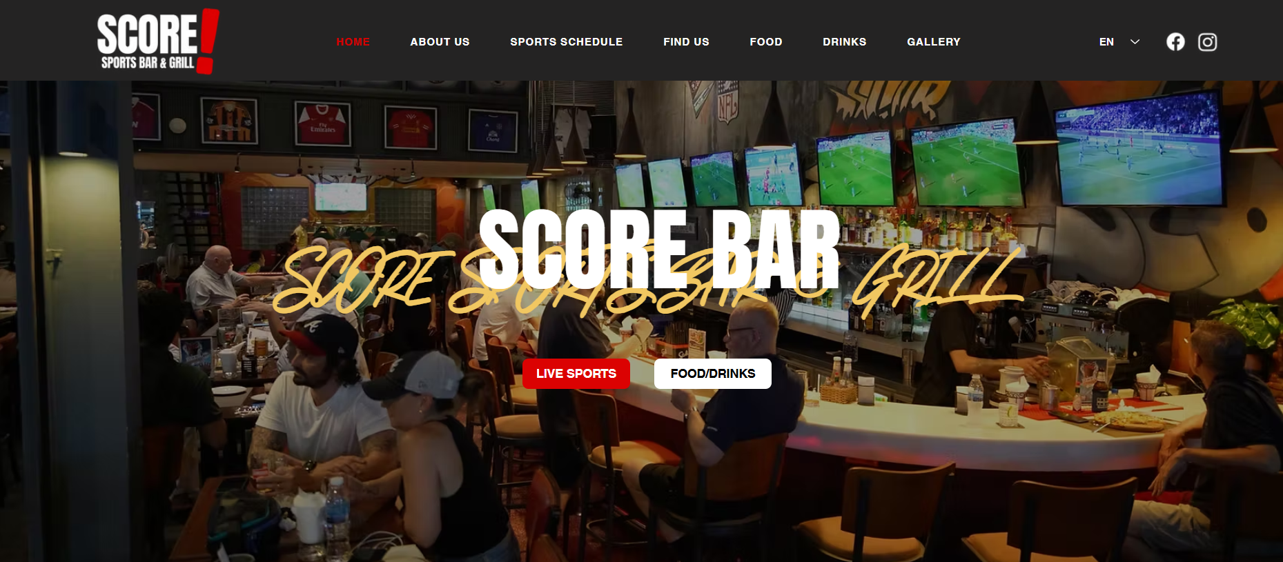 I was responsible for redesigning the SCORE! Sports Bar & Grill website, focusing on a cleaner layout, improved mobile responsiveness, and clearer calls-to-action.